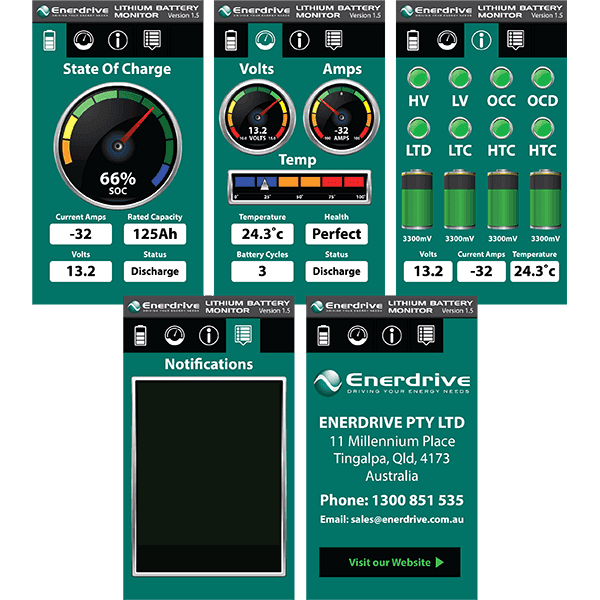 The Enerdrive | Dometic B-TEC G2 battery incorporates wireless Battery Monitoring Technology. By downloading the Android™ or Apple® app to your smartphone or tablet device, you can monitor the following information;