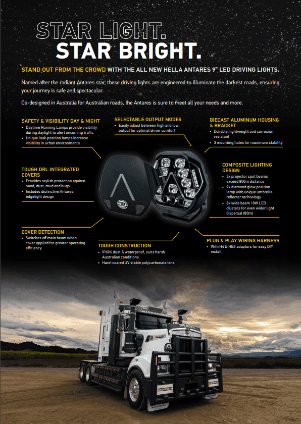 STAND OUT FROM THE CROWD WITH THE ALL NEW HELLA ANTARES 9” LED DRIVING LIGHTS.