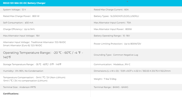 Renogy REGO 12V 60A Dc-Dc Battery Charger